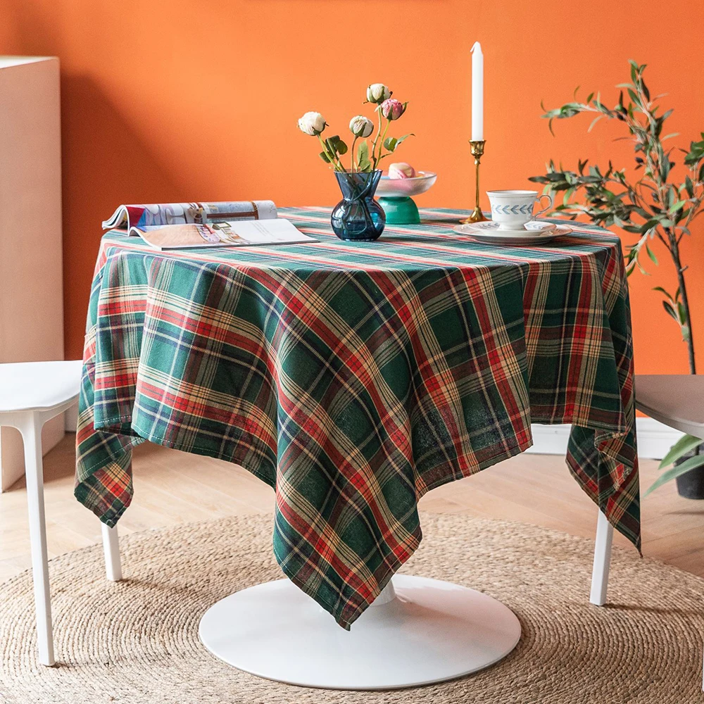 Green Checkered Table Cloth Rectangle Cotton Linen Fabric Washable Buffalo Plaid Table Covers for Festival Party Christmas Decor