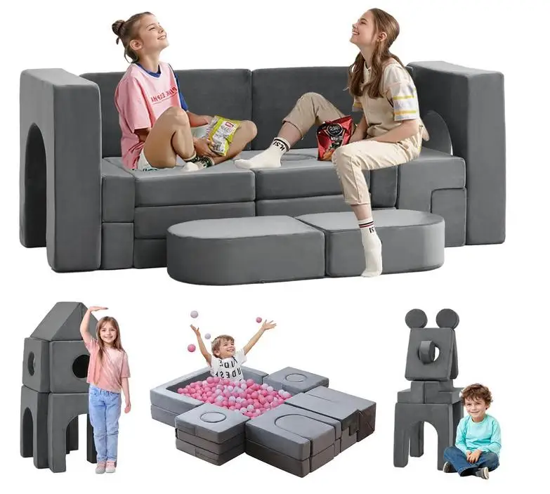 Endless Possibilities: Featuring 22 versatile pieces that can be effortlessly rearranged, the play sofa transforms into various styles—from snug couches to imaginative forts. It inspires creativity and interactive play, making it a delightful addition