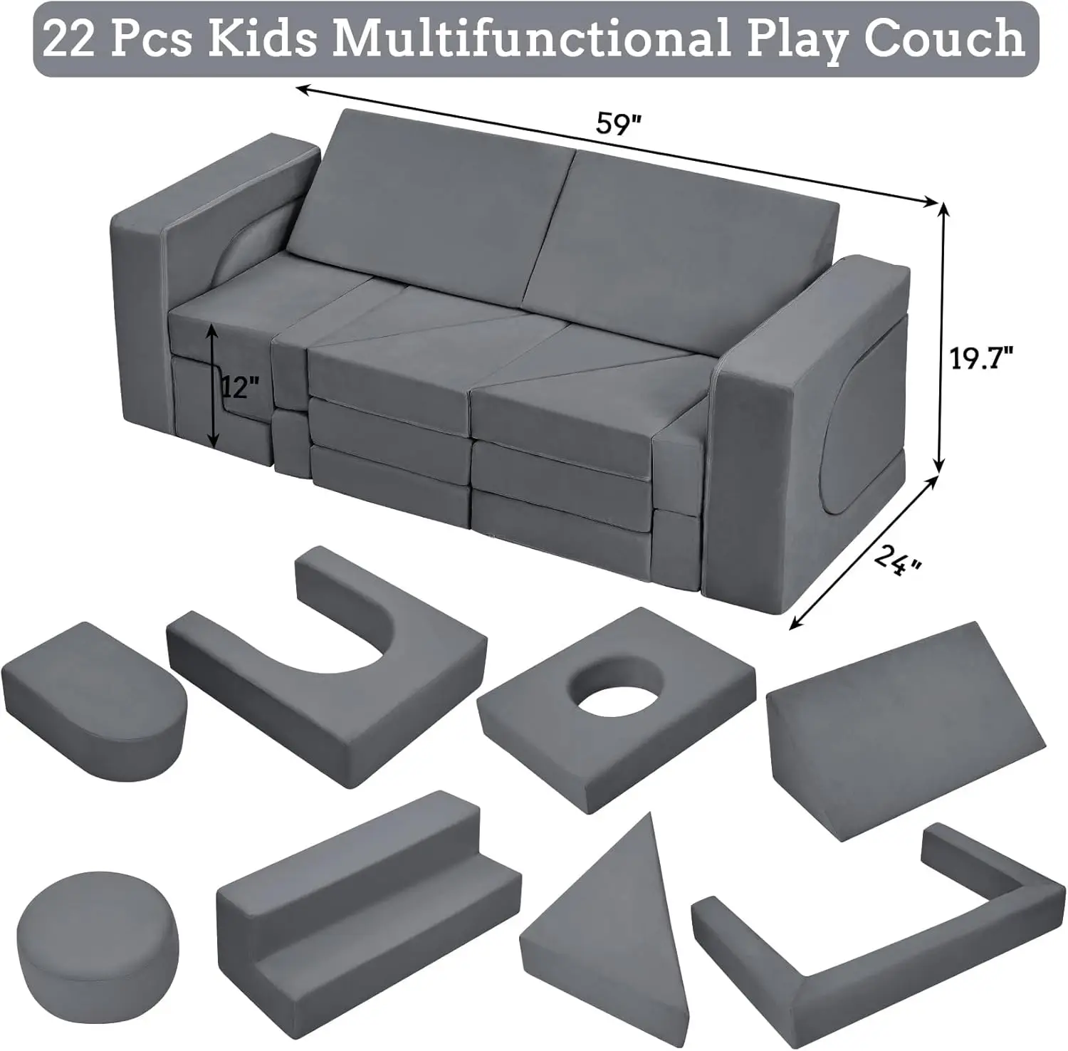 Modular  Play Couch, 22Pcs Sectional Sofa Imaginative Furniture Play Set, Creative Playroom Furniture for Convertible Foam